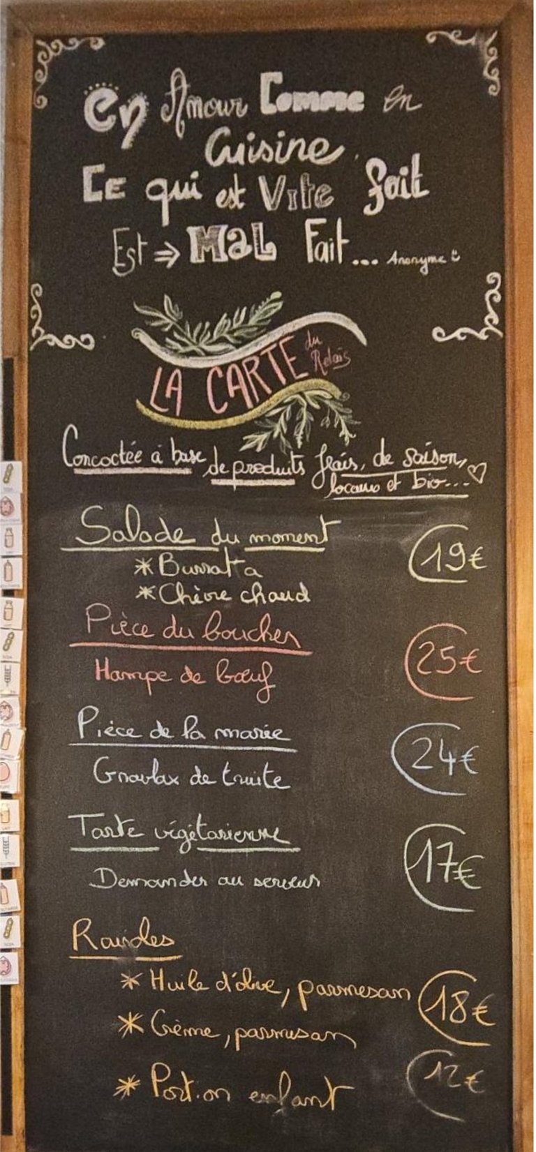 La carte Servie du lundi au vendredi de midi à 14h